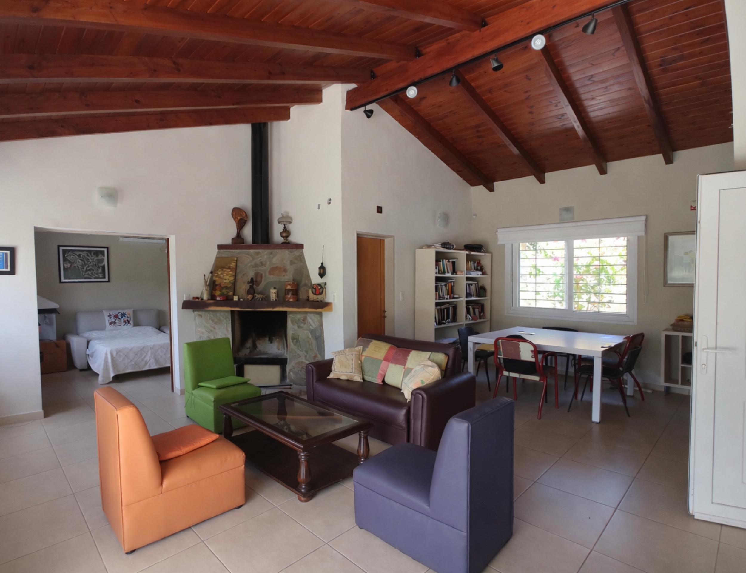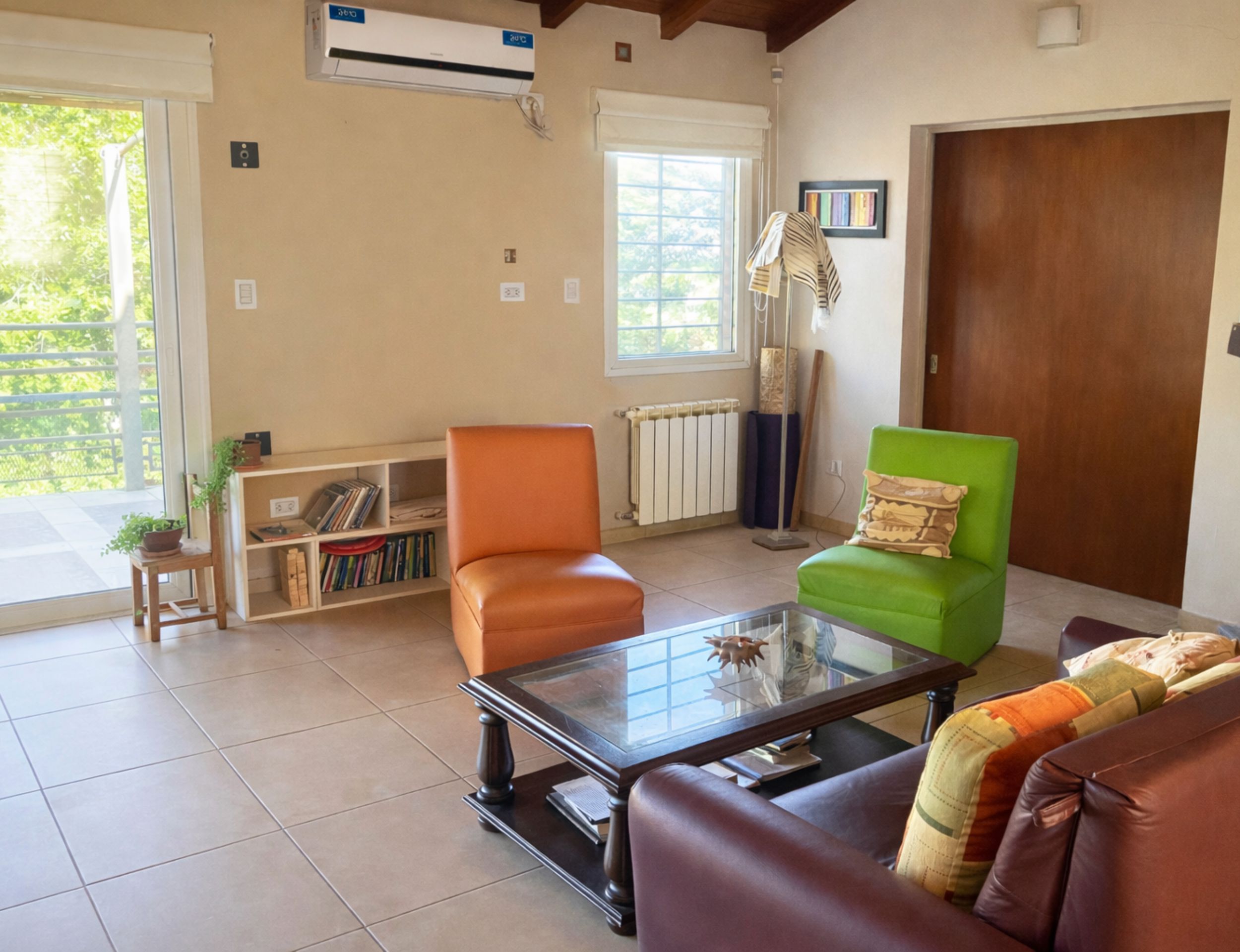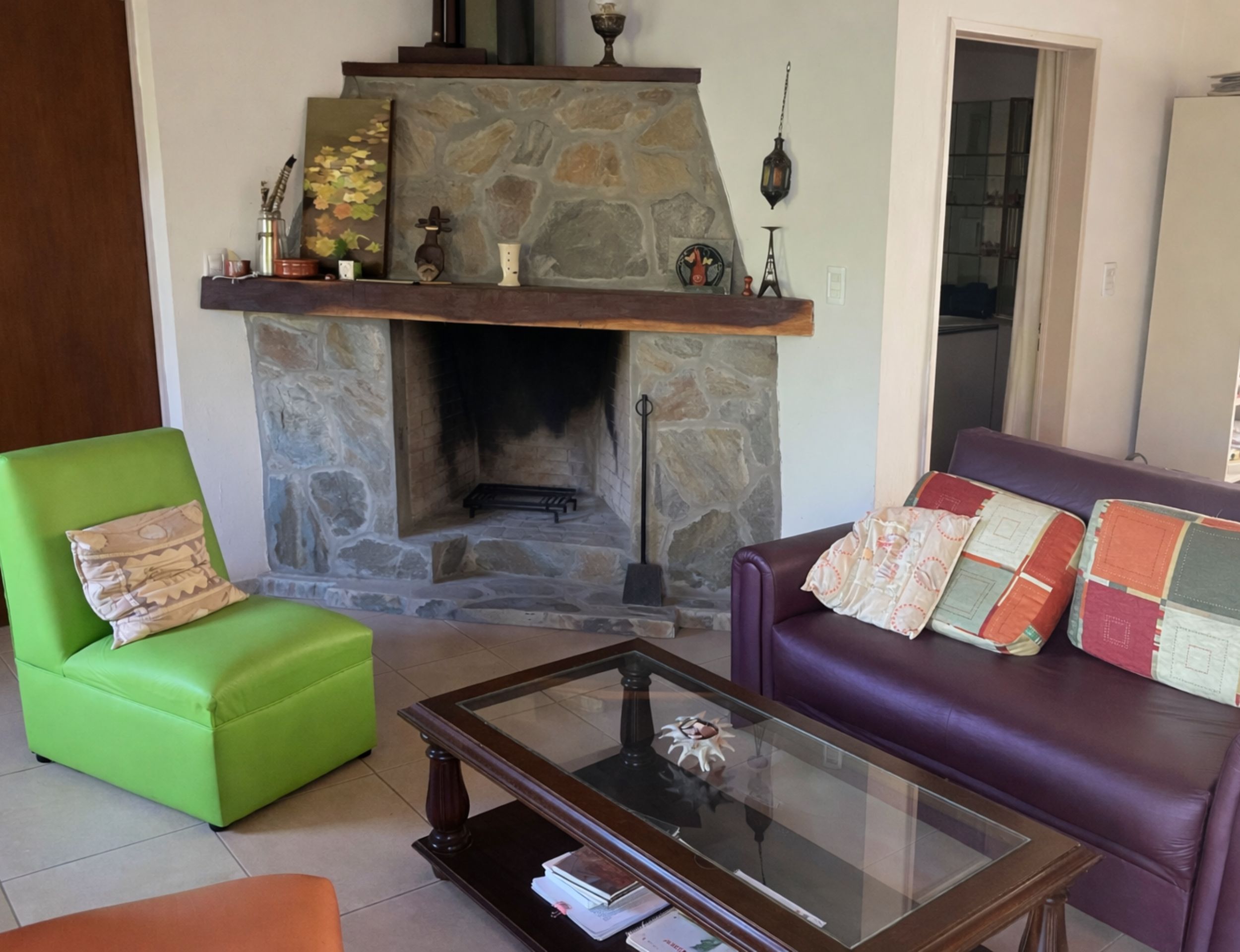 Living amplio con hogar.