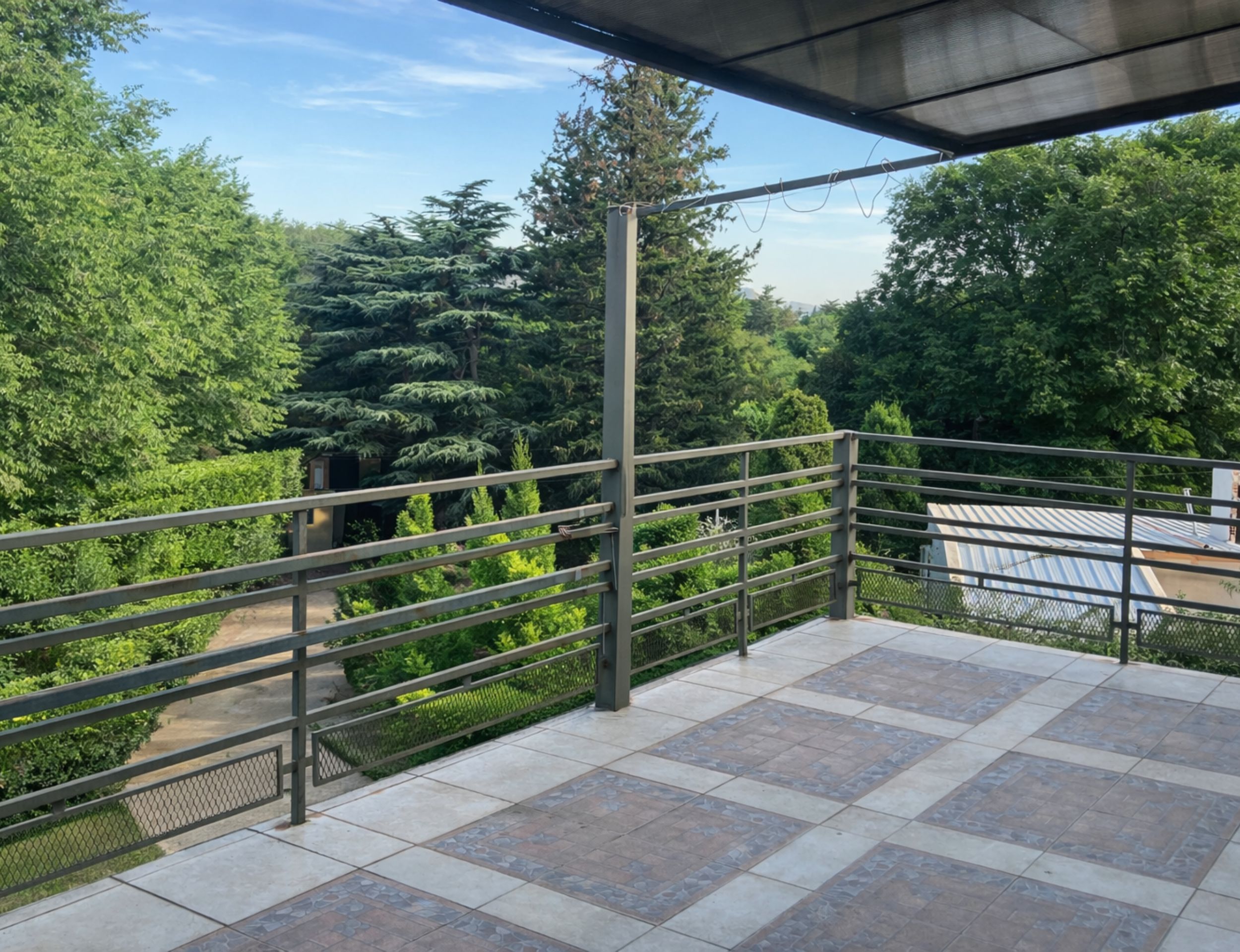Galería techada con asador y gran vista al este.