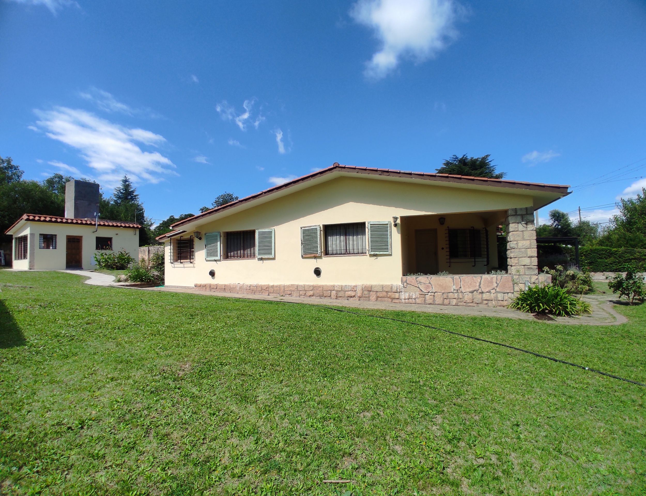 Casa principal: Galería, living comedor con hogar, pasillo distribuidor, dormitorio principal con placard y vestidor, baño con bañera, dos dormitorios con placard, cocina comedor con desayunador, lavadero, garage para un vehículo y asador propio.