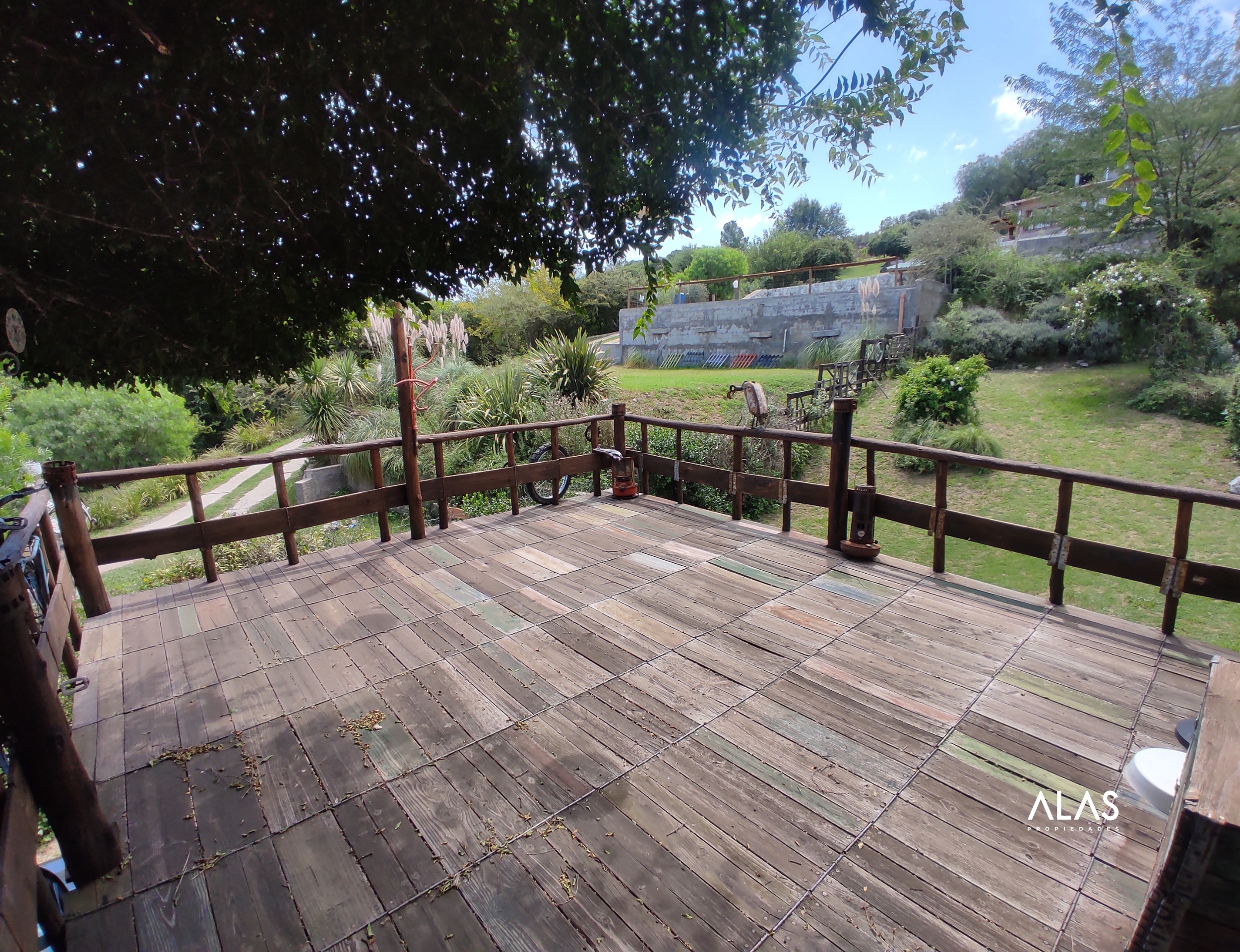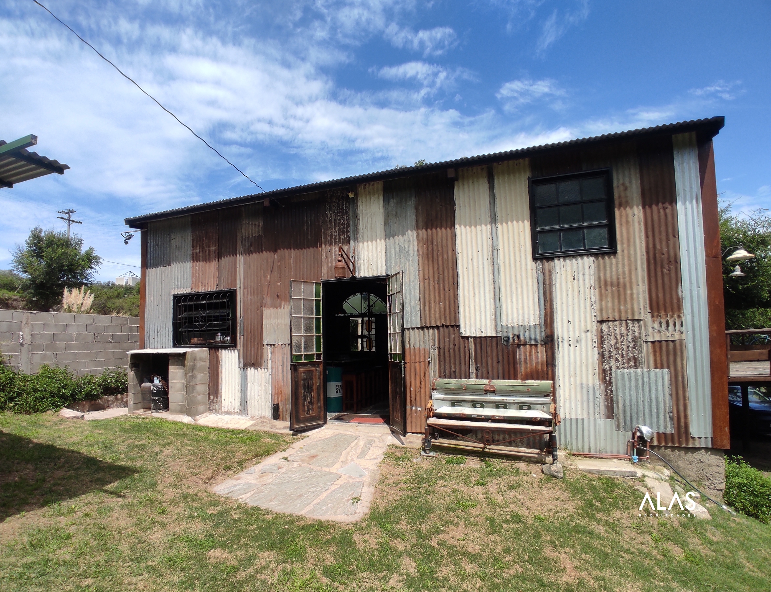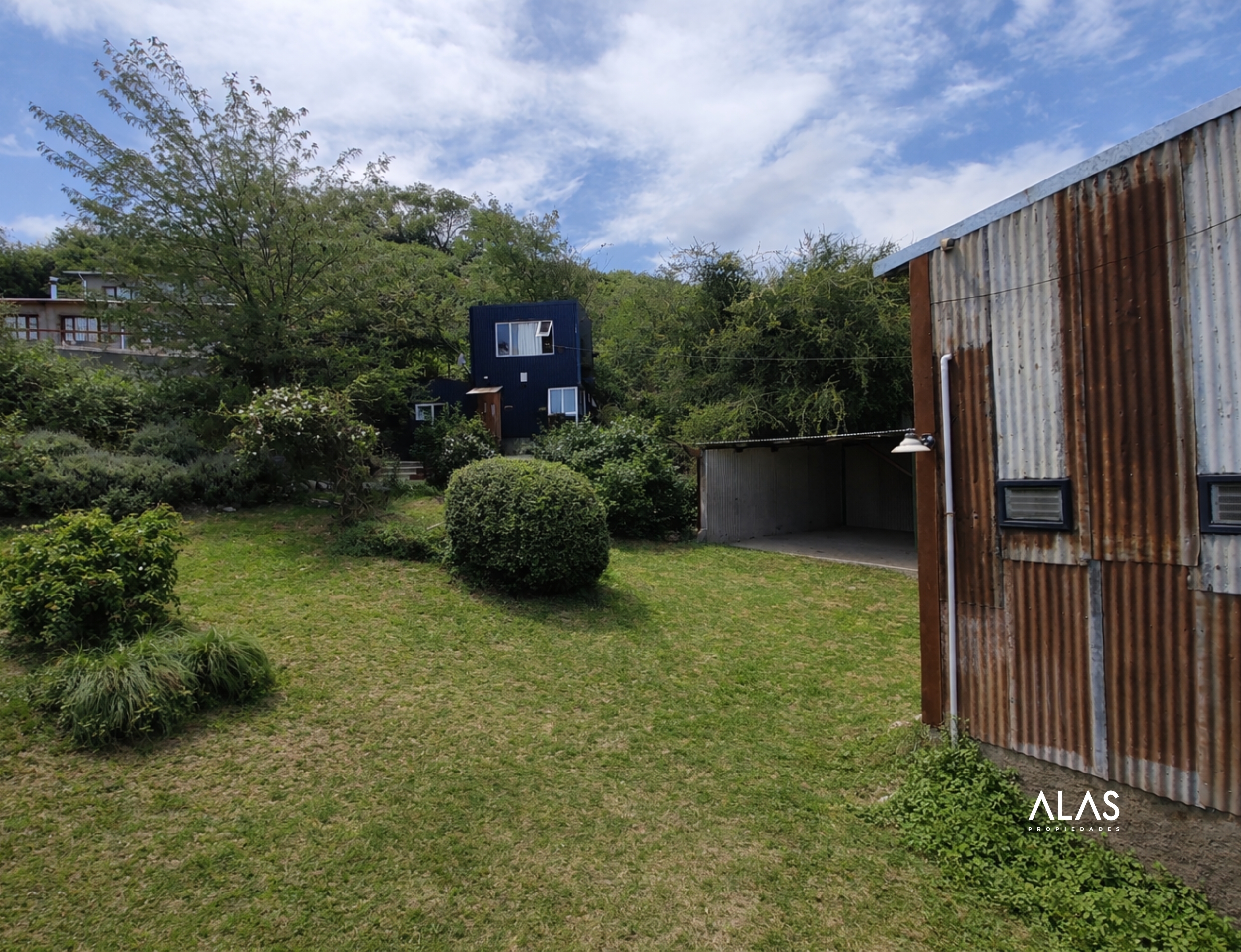 Exterior: Parque y quincho (tinglado con techo de chapa y estructura de hierro).