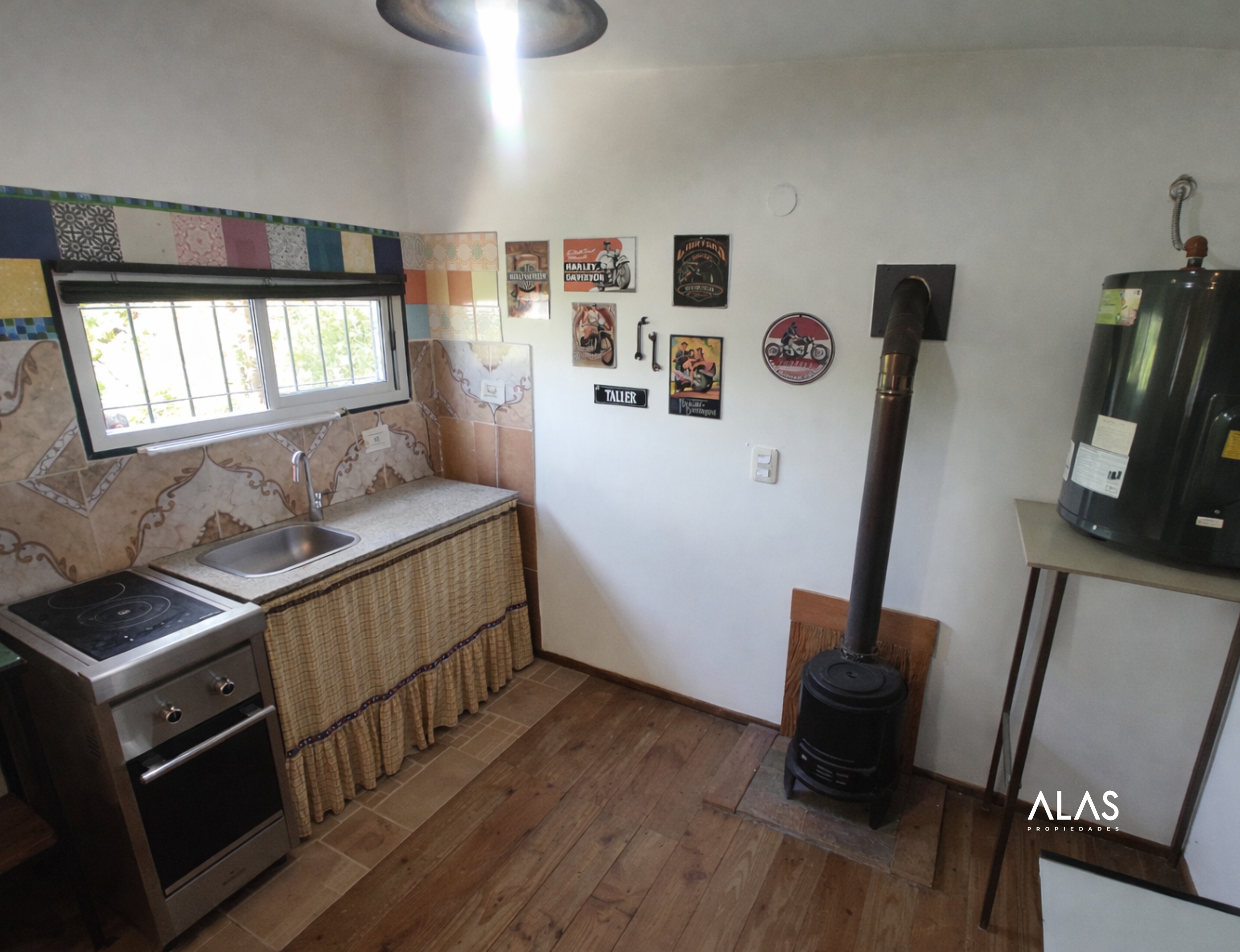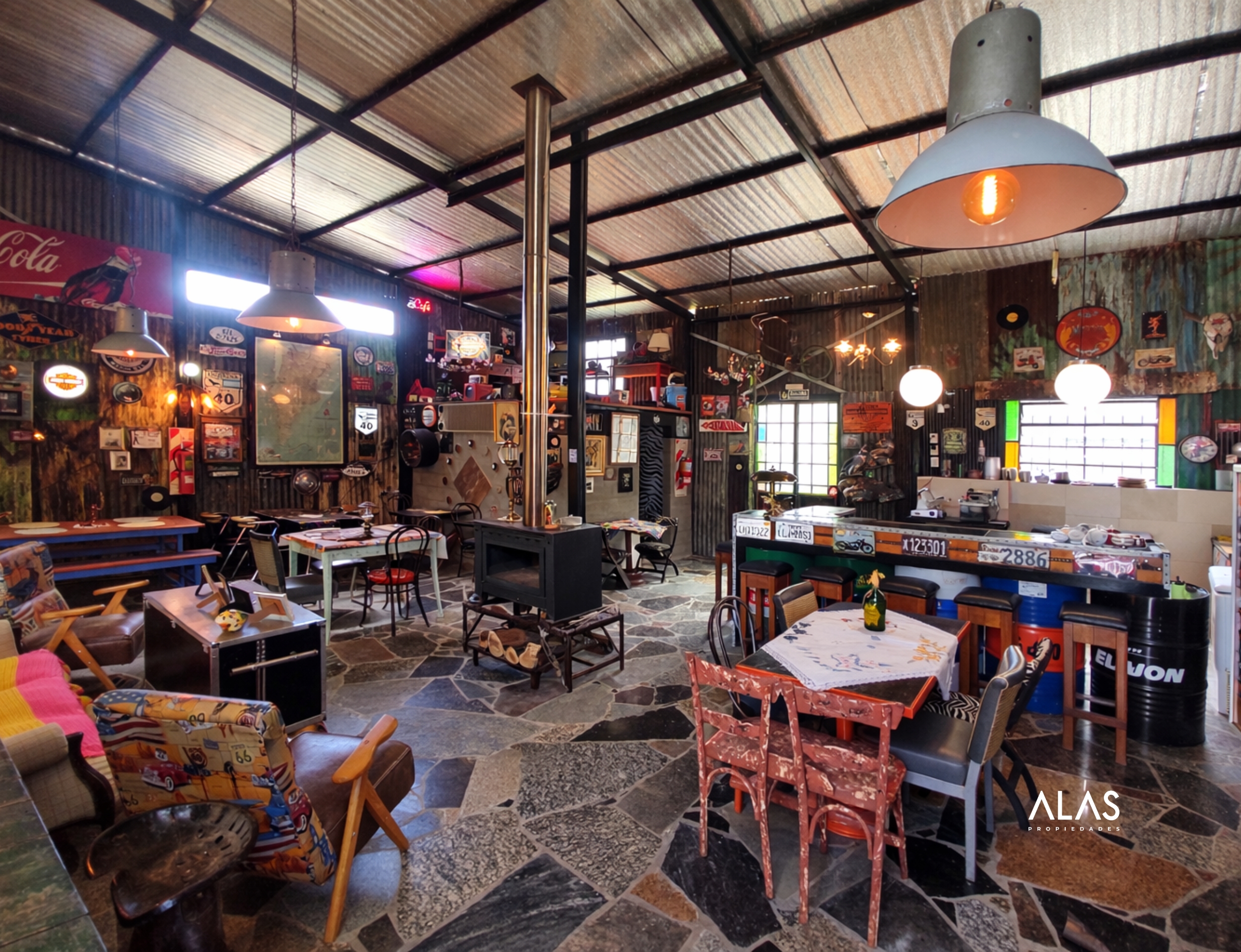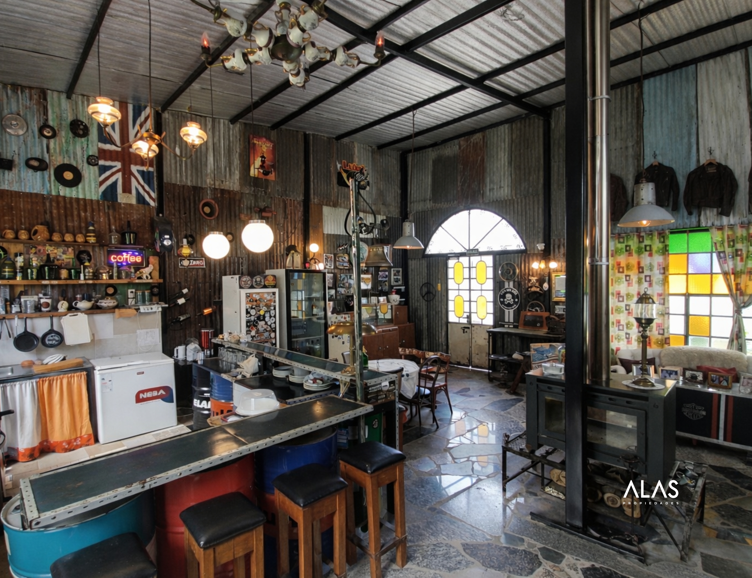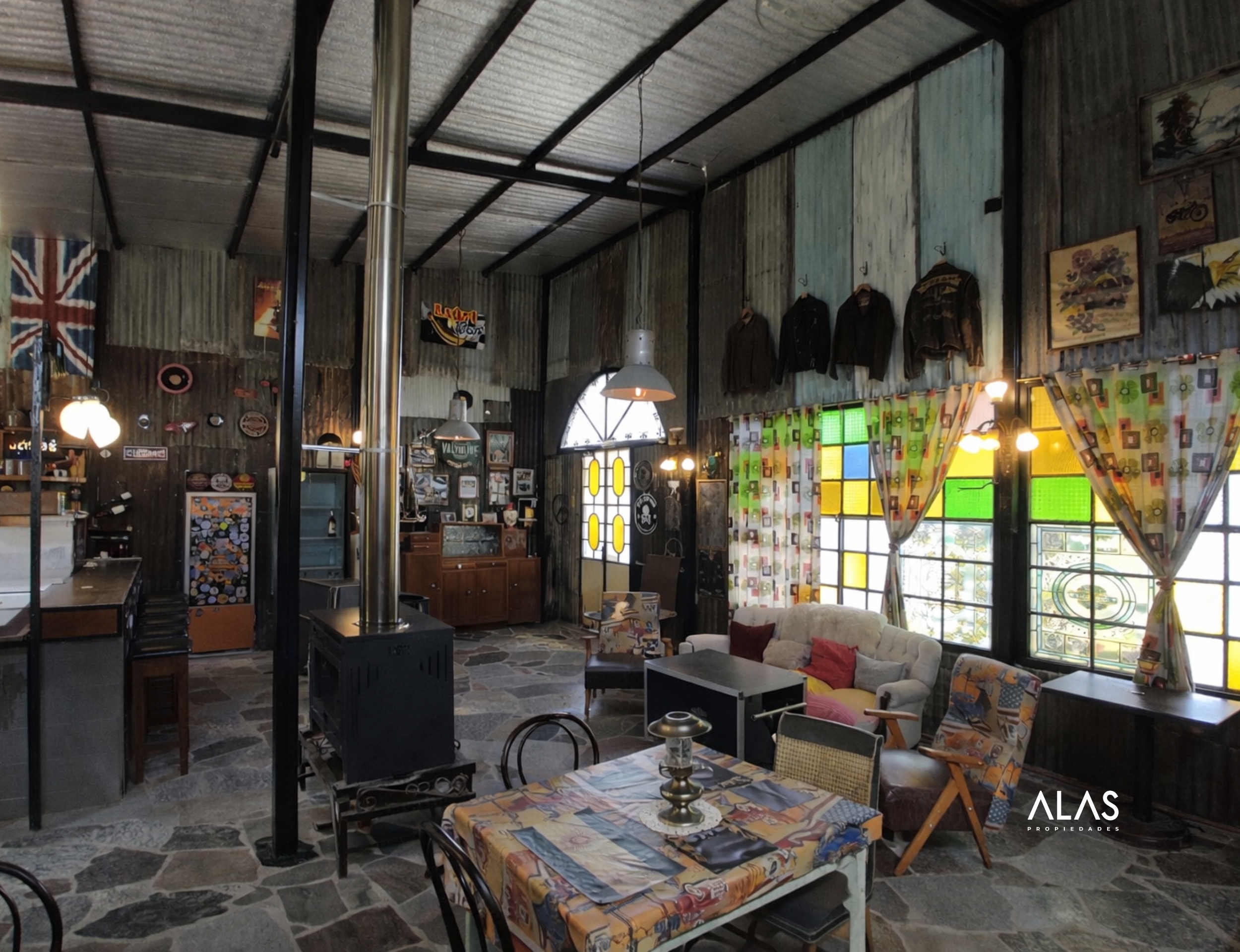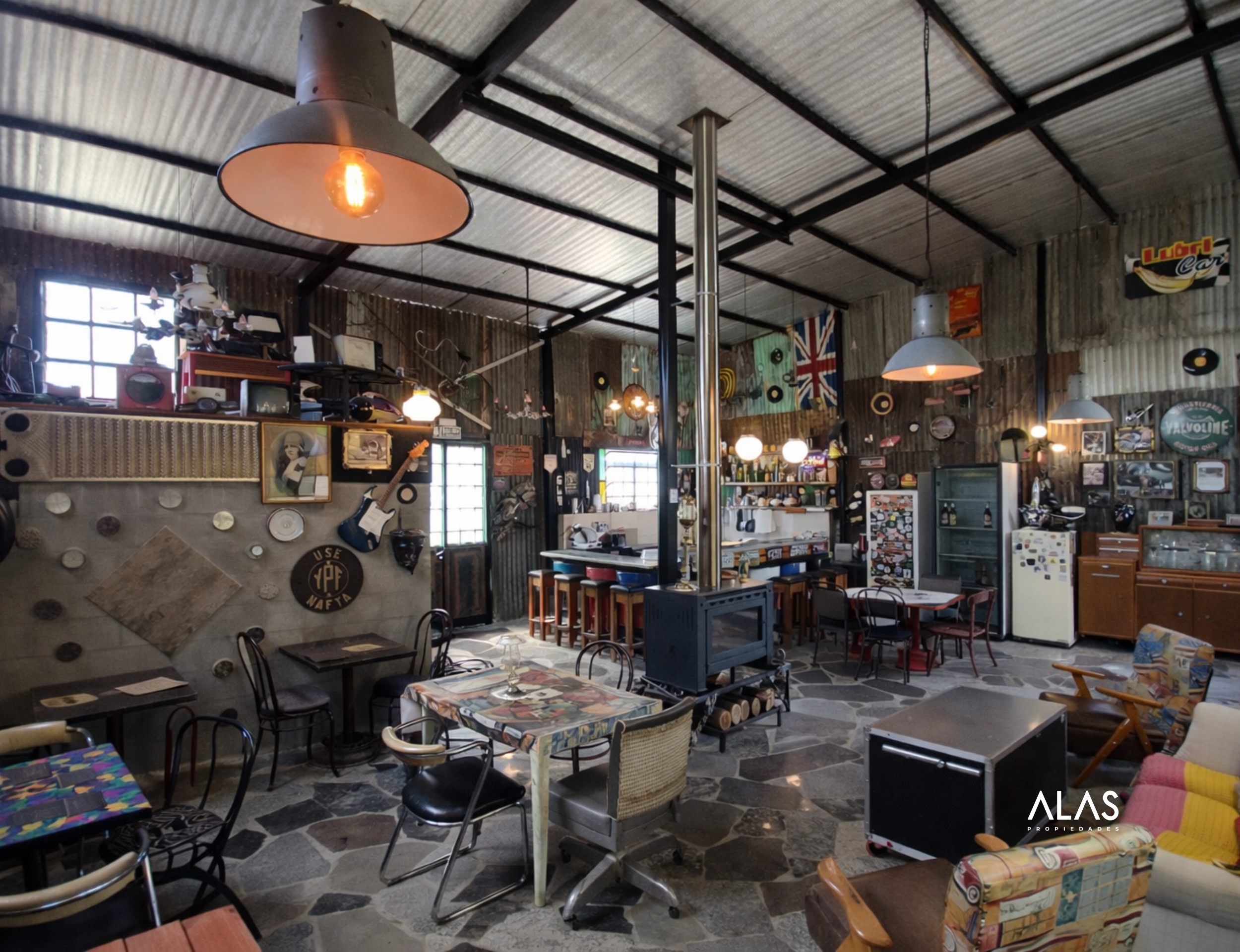 Salón comercial para gastronomía (100 m²): Salón totalmente equipado con cocina industrial, freidora, freezer, enfriador de bebidas, vajilla para 70 personas y estufa tipo tromen. Cuenta con dos baños, terraza y galería con espacio para mesas. Ideal para restaurante, casa de té, cervecería o parador turístico.
